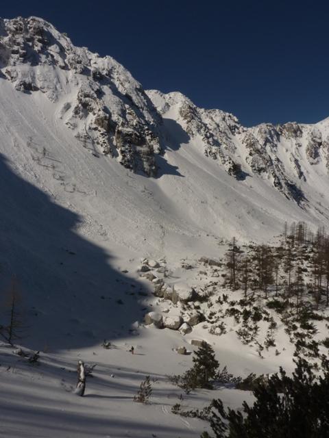 Kakršna koli je ž bva šta zima letos, je je z jutršnem dnem fertik! Na zadn zimski dan mi je le uspevo plat prvi žlih v šti sezoni. Razmere, predvsem pa vola mi nista dale, da bi v šti sezoni prej napadu. Gvišno je mavo vržeh tot let. No kkr koli, gruntu sm na furane pršiča za vikend pa tot ni bovo tk ko b mrvo bt. Zutra iskorito še zadn dan gondole, se potegnu do konc smučišča in naprej na Končnikov vrh. Na poti grta je pihavo, da je bovo kr hodo, na vrho pa ko da b ga odrezo, nč, pravo brzvetrje. Ž od dole sm si nagledo žlih, ki ga še nisn plo in v upanjo, da nam faliv se poženem proti drugi lukni od Končnikovga do Križnikovga vrha. Razmere trde, ledeno, nekleh mavo napihanga suhga snega, bol spoda pa ritje v zmrzjeni plazovini. V Križniko se počas sprajim, ko dov po istem zliho v stilo profiča prfura Pavli. K’kr je furu sn biv zihr da je Karničar, ki sn ga sreču zjuto na gondoli. Pavli je mev dojst za dons, kr že 14 dni rovari po žliha. Js pa svda še ne, pa sn se zagnav še v Kepsov žlih, kjer sta m nasprot glih pršva Štehi in Gozdni.